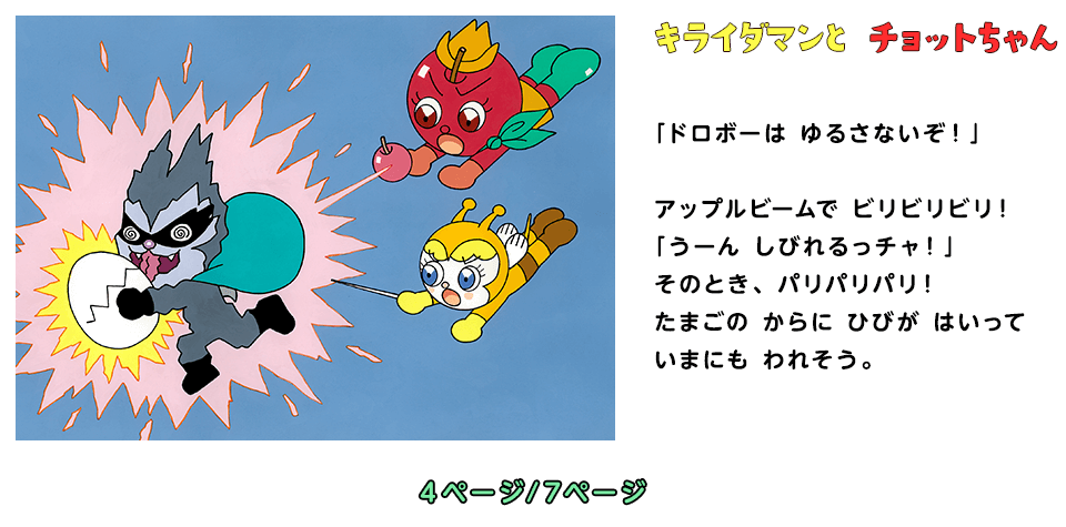 ホーム > 食でつなぐ、人と笑顔を。 > リンゴキッドとなかまたち > えほん > 第7話「キライダマンと チョットちゃん」