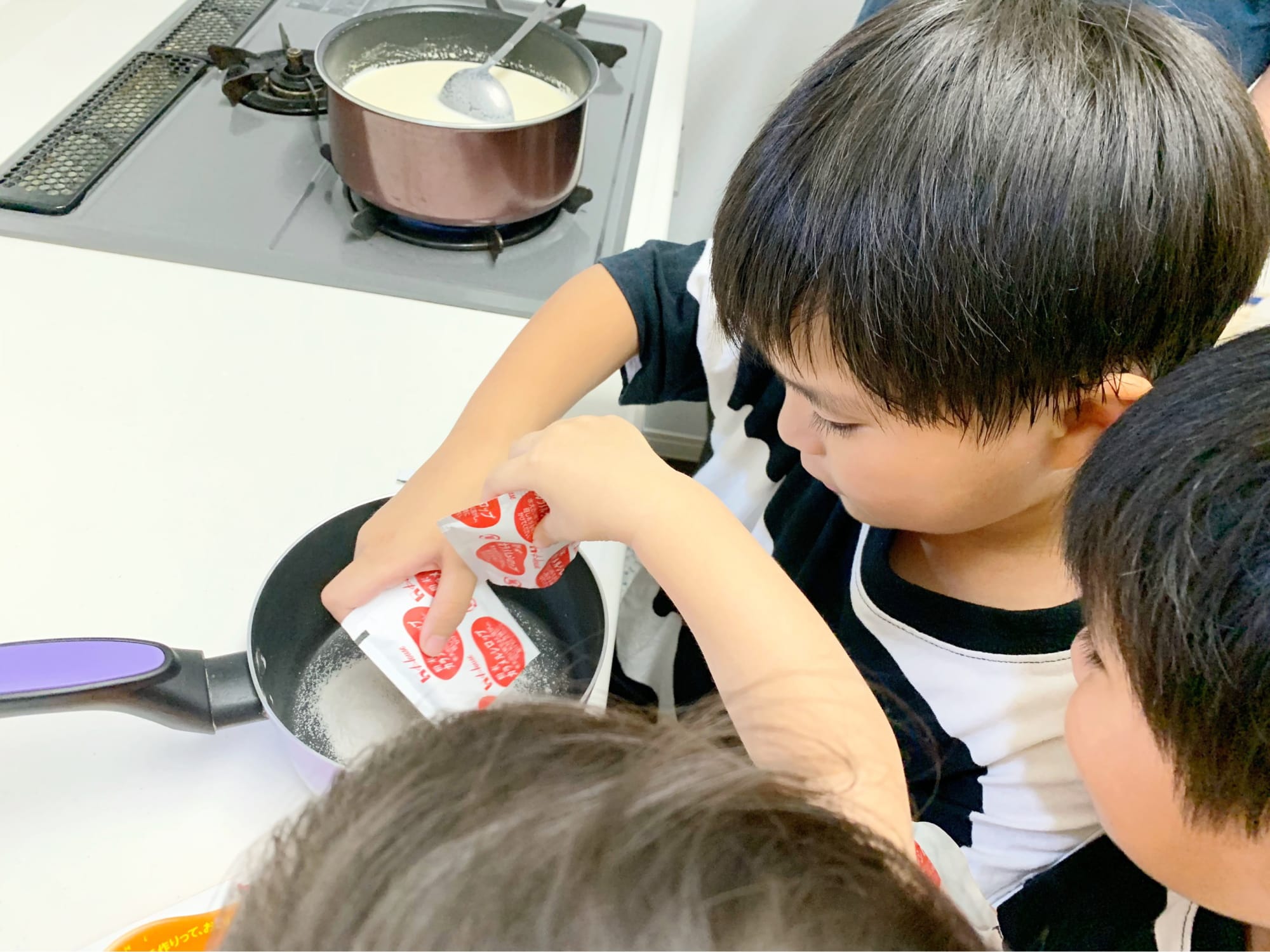 プリンエルと牛乳を混ぜて加熱すればプリン液は完成