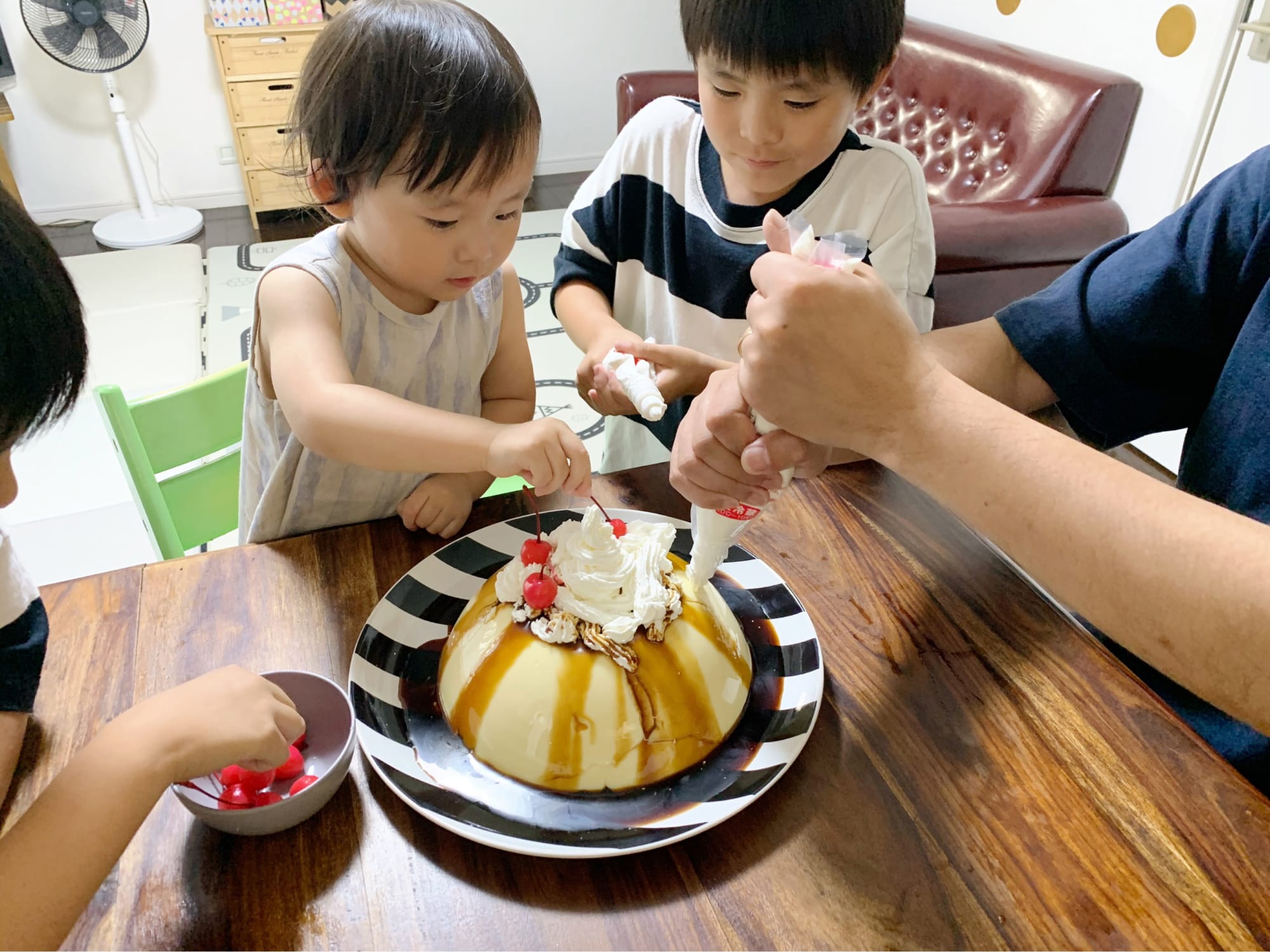 ダイナミックな出来上がりは、パパも子どもも大喜び。どどーんとビッグなバケツプリンは、ワクワクが止まりません。パーティーなどでも盛り上がること間違いなしのインパクトあるデザートに、「プリンエル」を使って気軽にトライ!