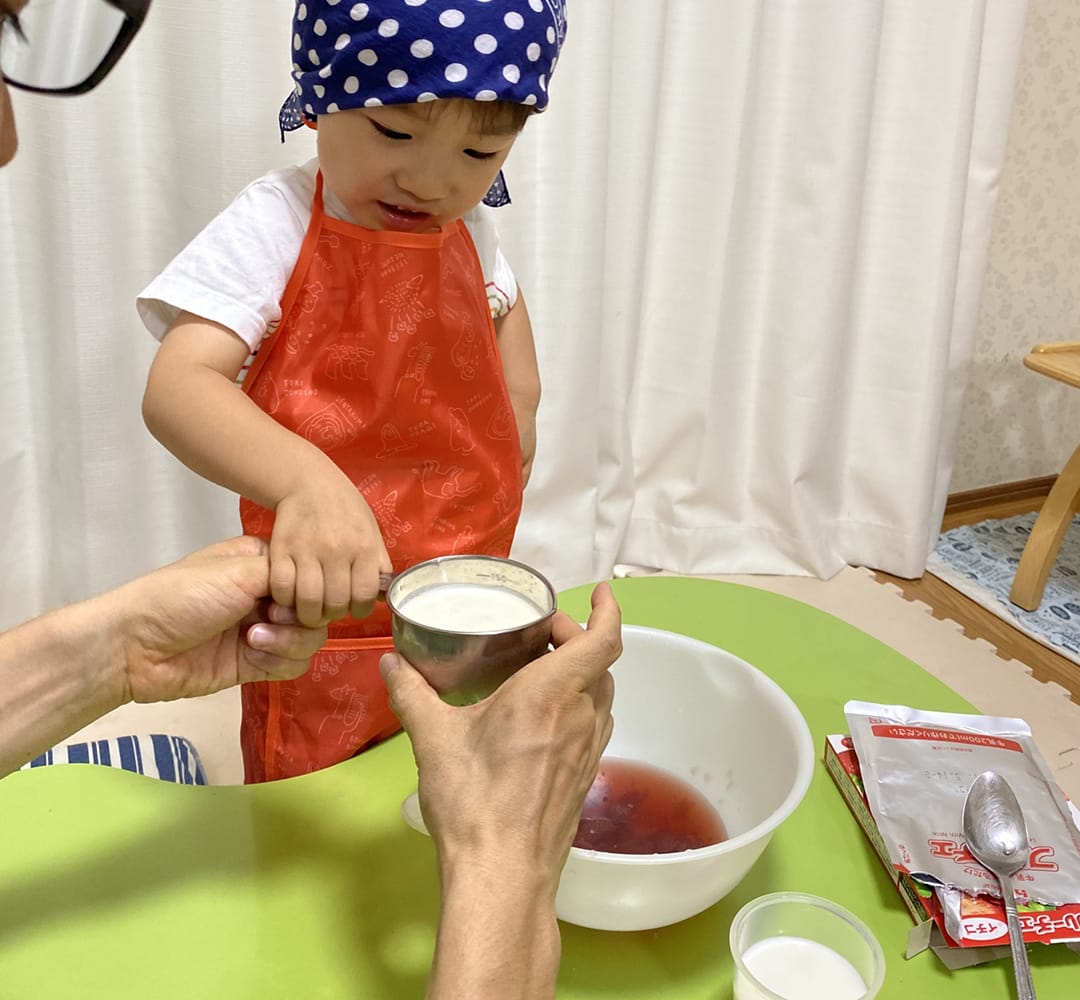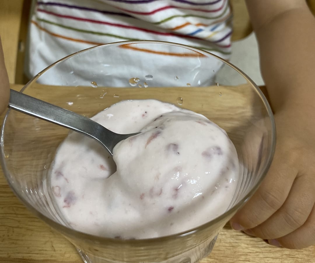 フルーチェと牛乳、生クリームをまぜて、固まっていく様子を見てみよう