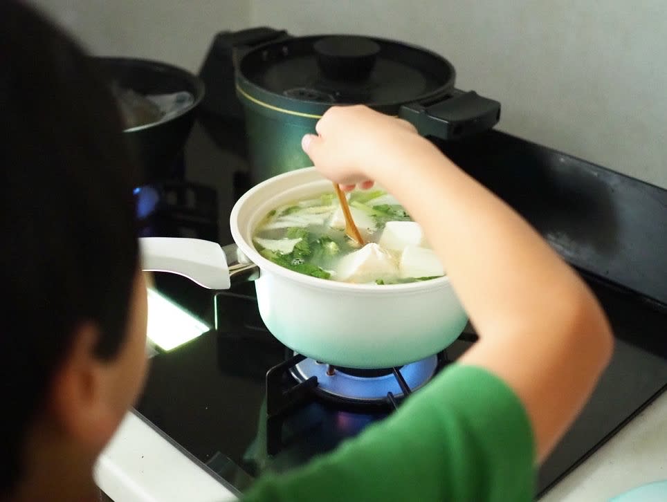 - 火の通りを早くするために、食材は小さく、そして同じ大きさに切り揃えるのがポイント。見栄えも食感もよくなります。