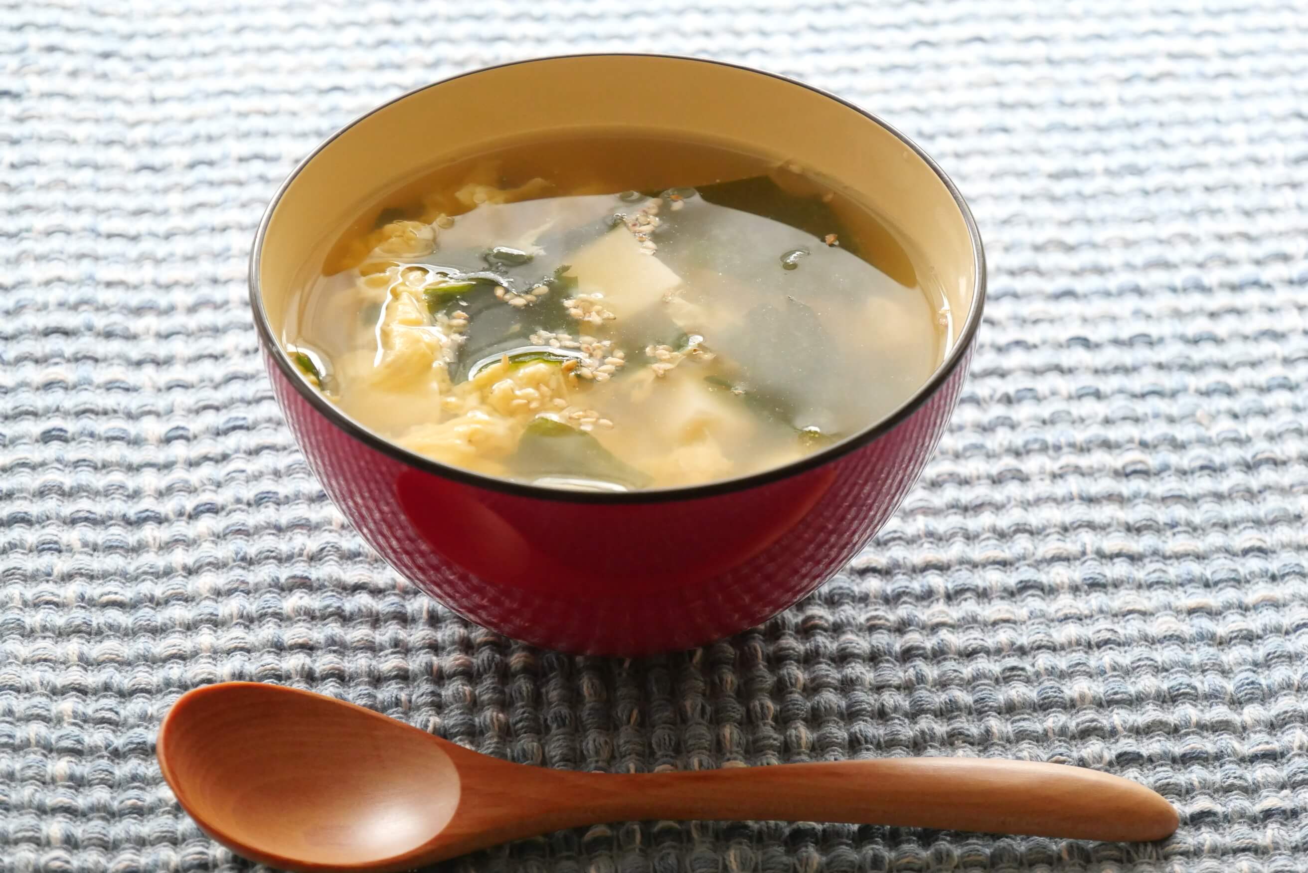 (3)火をとめ、溶き卵を回しかけたら、10~15秒ほどそのまま待ってから豆腐をくずさないようにゆっくり全体を菜箸で混ぜる。白ごまを加えて出来上がり。