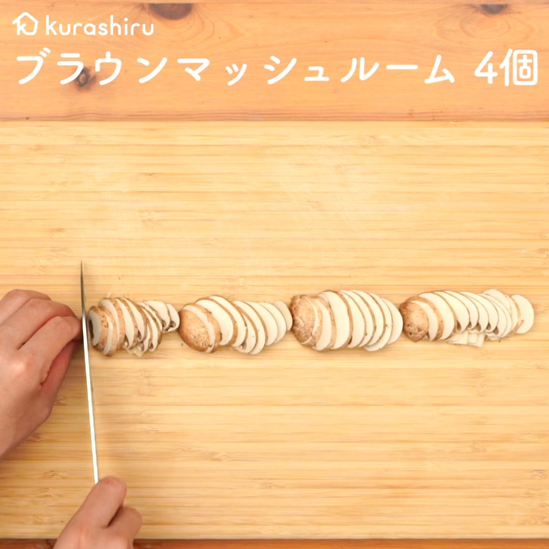 1.玉ねぎは繊維に対して垂直に薄く切り、ブラウンマッシュルームは薄切りにします。
