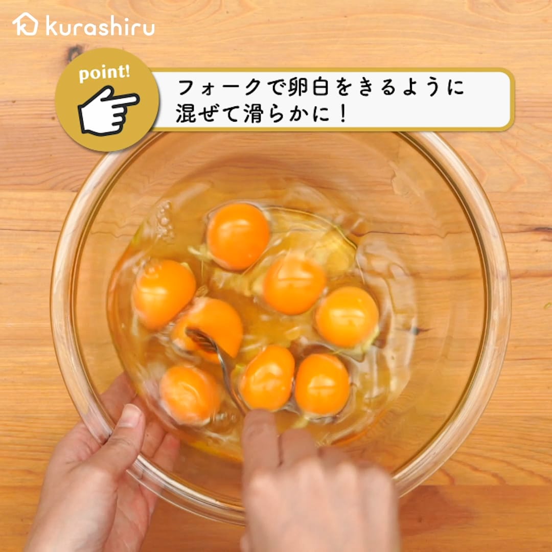 白身のどろっとしたかたまりがなくなるように混ぜます