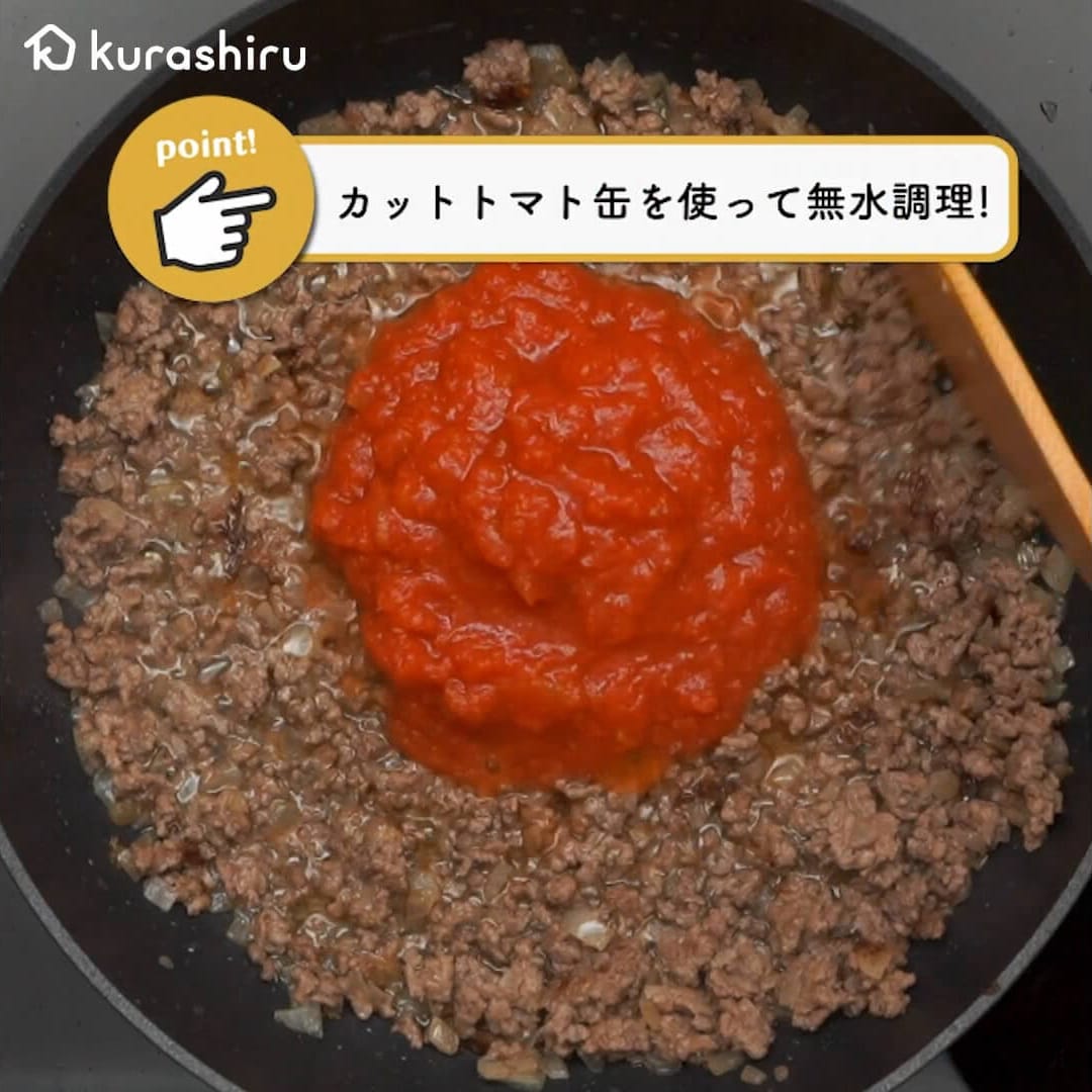 2.トマト缶を使用して無水調理にすることで、旨みがアップ